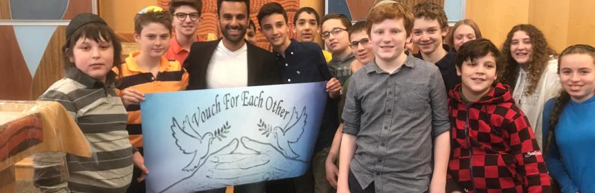 יוסף חדאד בפעילות הסברה בפני תלמידי תיכון יהודי בבוסטון
